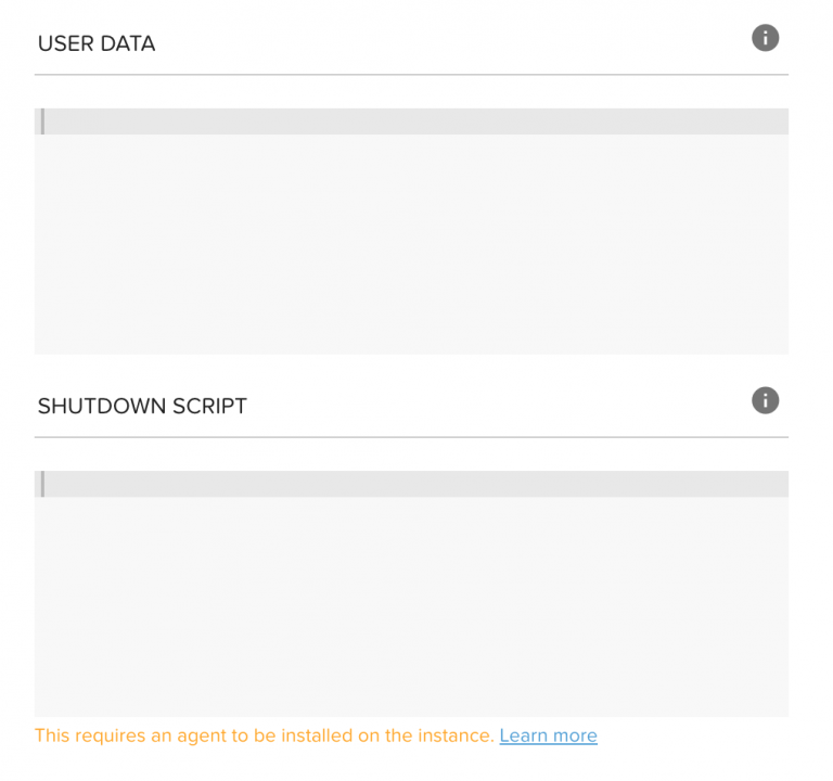 To enable the shutdown script, an agent must be installed on the instance during startup. This is done via the user-data entry and will have the agent up and running on the instance within a few seconds. Your shutdown script will be deployed to every new instance on your Elastigroup. Our agent will sample the API for updates every 10 seconds to figure out if the script should run. Once we determine we are going to remove or replace the instance we will notify the agent so the script can execute. This means that the script will have around 10 minutes to execute prior to the instance termination.